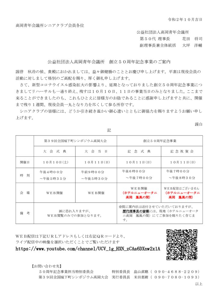 公益社団法人高岡青年会議所 創立50周年記念事業のご案内